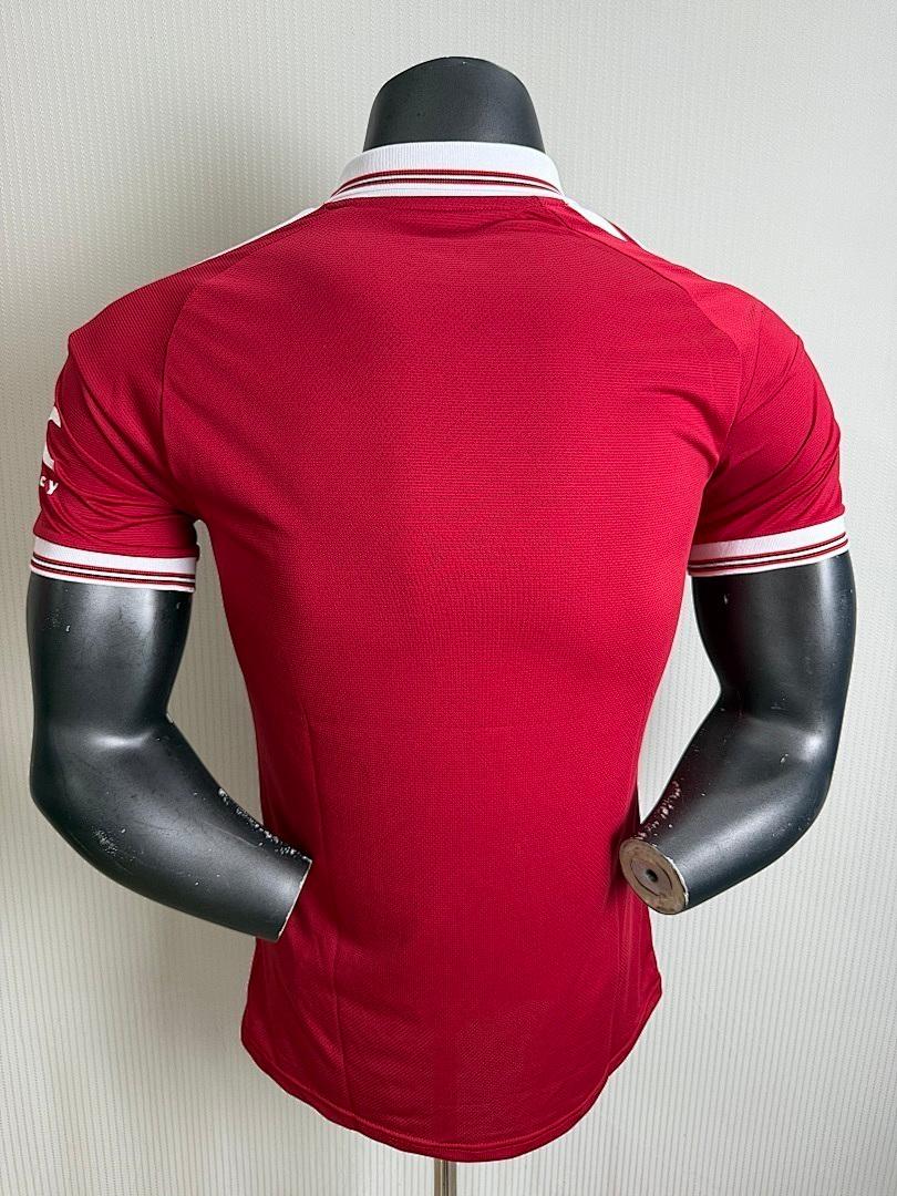 Camisola principal em vermelho com detalhes contrastantes, combinando tradição desportiva com uma estética moderna. Desenvolvida para proporcionar conforto, leveza e versatilidade.