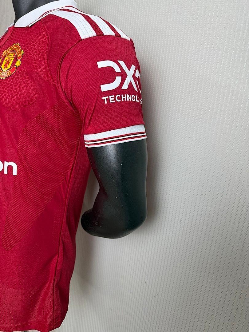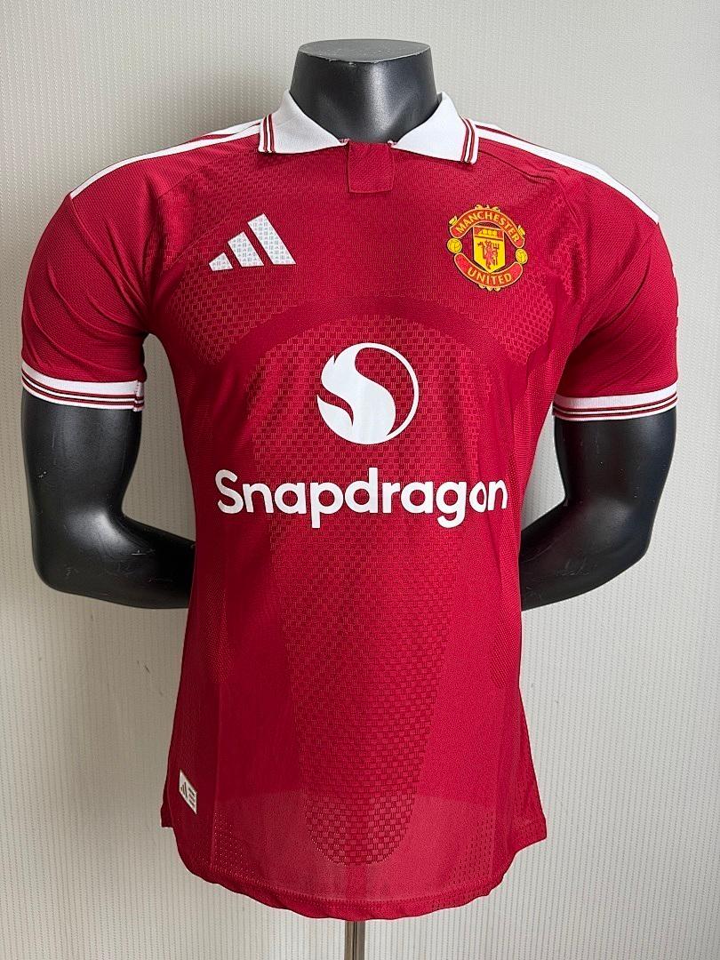 • Camisola de futebol vermelha Manchester United com logótipos Adidas e Snapdragon