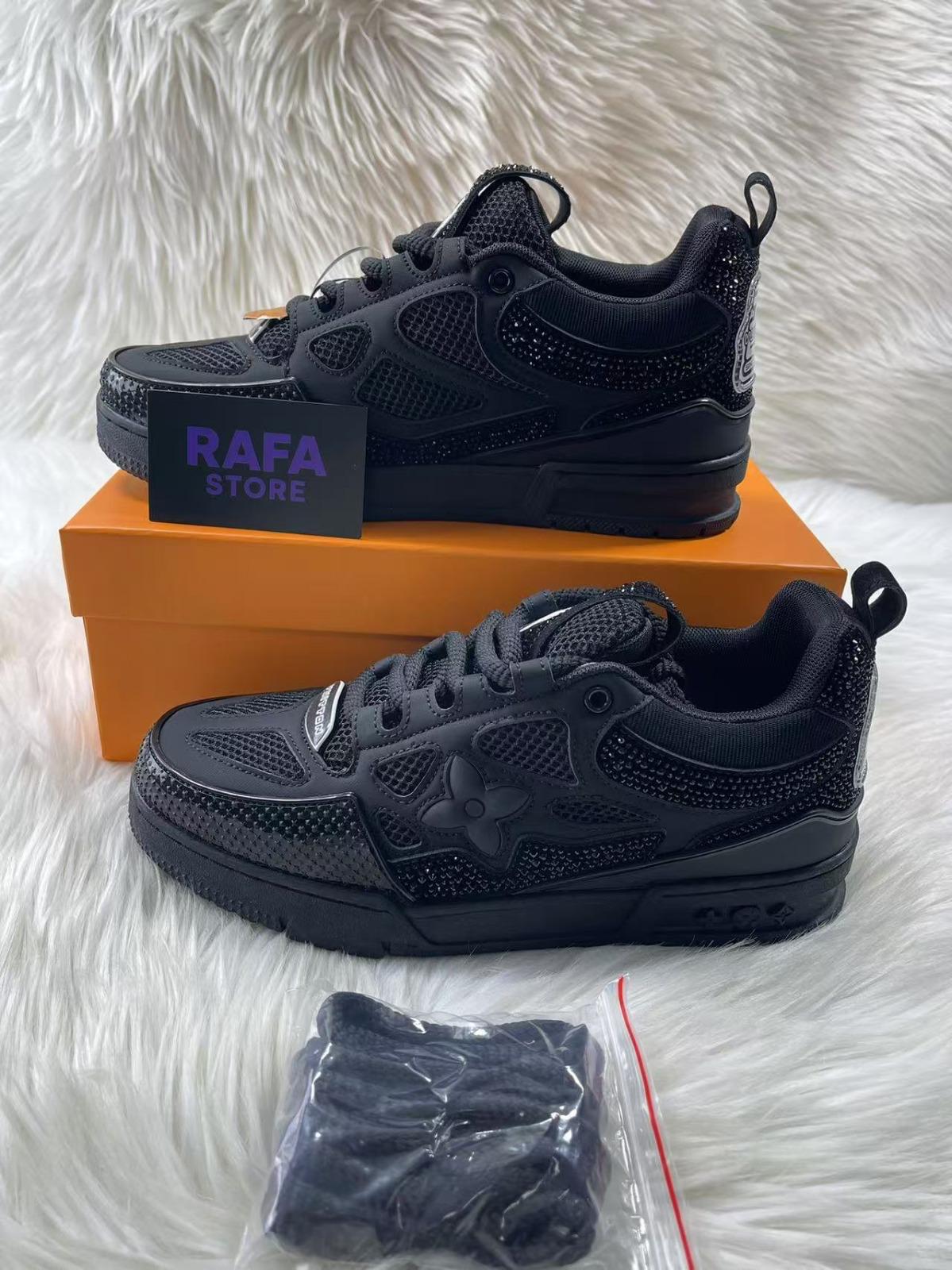 Descrição: Ténis Noir Élégance com design sofisticado totalmente preto, pensados para quem valoriza um estilo moderno com toque de luxo.